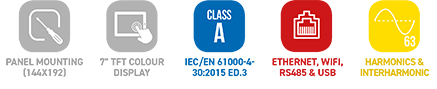 Titreşim, Dengesizlik, Harmonikler (63.’e kadar) ve Ara Harmonikler gibi ek PQ verileri kaydedilebilir. Şebeke Sinyalizasyonu. Ekstra gerilim ve akım ölçüm kanalları, Nötr Potansiyeli ve Toprak Kaçağı akımını izleme olanağı sağlar.